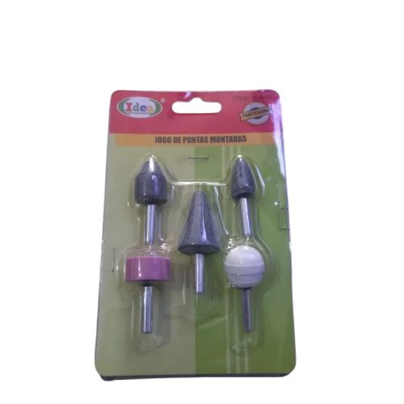 O Jogo de Pontas Montadas Profissional da marca Idea com 5 peças é um conjunto de acessórios abrasivos projetado para uso em furadeiras, retíficas elétricas ou pneumáticas e outras ferramentas rotativas com mandril compatível. Esse conjunto é ideal para desbaste, afiação, acabamento, remoção de rebarbas e polimento de peças em metal, madeira, plástico ou outros materiais — principalmente em locais de difícil acesso onde abrasivos maiores não conseguem chegar.