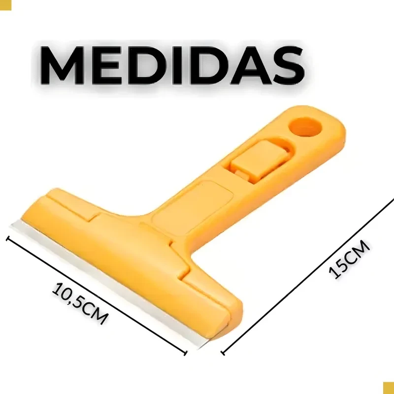 ???? Versátil e eficiente: sua lâmina em aço removível é ideal para remover adesivos, colas, tintas, manchas, resíduos e películas protetoras, além de realizar cortes precisos em papelão, plástico, borrachas finas e outros materiais.