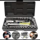 Este conjunto conta com componentes fabricados em aço de alta qualidade, proporcionando durabilidade, desempenho e resistência à torção em operações de manutenção, montagem, reparos automotivos, industriais e trabalhos em casa. As chaves catraca permitem operação mais rápida e eficiente, reduzindo o tempo de trabalho e facilitando o acesso em locais de espaço restrito.