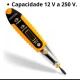 Este detector opera de forma não intrusiva, detectando campos elétricos próximos ao condutor energizado e indicando a presença de tensão através de sinal sonoro e visual, facilitando a identificação de circuitos ativos e aumentando a segurança durante intervenções elétricas.